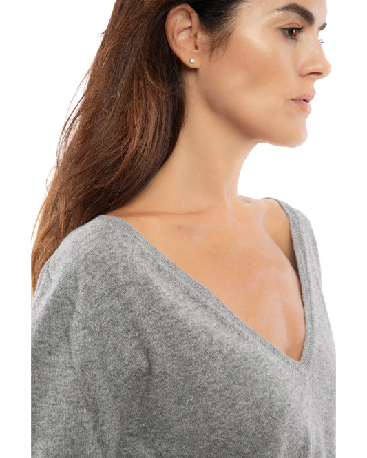 Made in ItalyWomen's Cashmere 3/4 Sleeve Wide V-Neck Jumper Melange GrayRegular price $369Regular priceUnit price / per